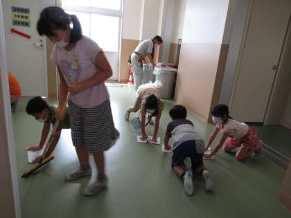 2組は、2年教室前廊下や、階段下廊下を掃除しています。