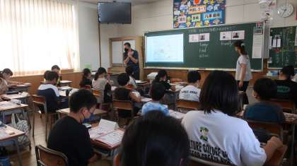 1組は、外国語活動の様子を見ていただきました。英語で人物を紹介する学習です。2組は、道徳の時間を見ていただきました。短所も長所ととらえて自分のよさを伸ばしていこうというテーマで行いました。どちらのクラスも、和やかな雰囲気で学習を進めていました。