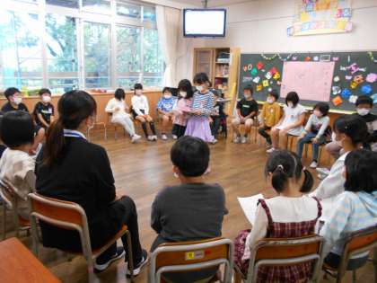 教育実習の先生とお別れの日でした。子供たちは、感謝の気持ちを伝えたり歌を歌ったりして、最後に楽しい時間を過ごしました。