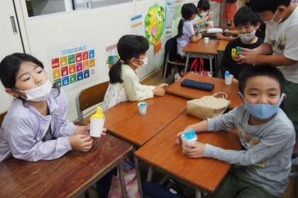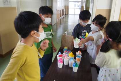 かき氷を作る係もあり、みんなでたのしく活動しました。