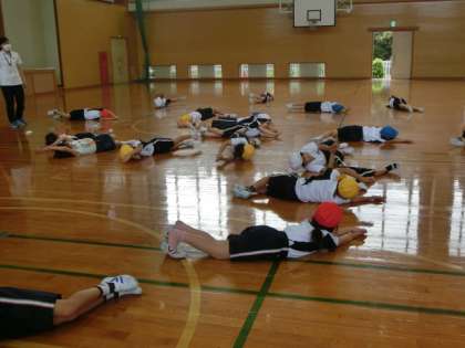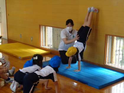 1年生はスポーツ指導員の方にマット運動を指導していただきました。みんな楽しそうに運動に取り組んでいました。