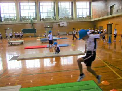 今日は体を反らせたり、着地で体を曲げたりする練習をしました。だんだんフォームが整ってきました。