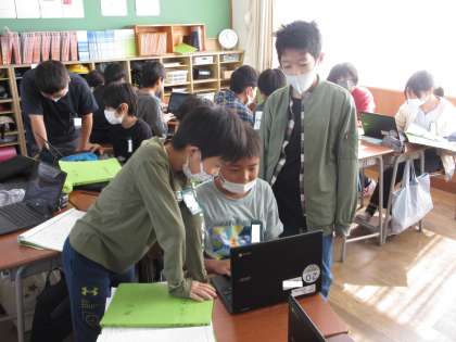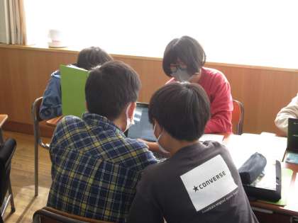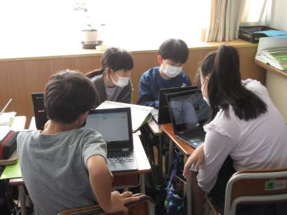 総合的な学習の時間では、学習発表会に向けて発表の準備を行っています。よりよい発表になるようグループ内で話し合いを重ねています。