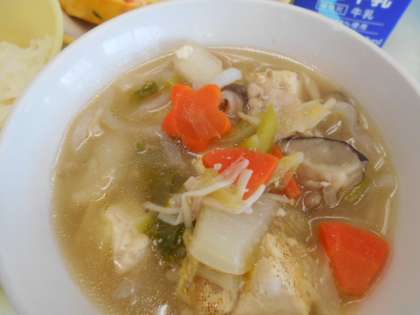 10月25日(火)今日の献立は、ごはん・牛乳・千草焼き・かぼちゃのいとこ煮・白菜なべ・みかんでした。「いとこ煮」とは、小豆と野菜を甘く煮込んだ料理で、日本各地に伝わる郷土料理です。一般的な「いとこ煮」は、小豆とかぼちゃを甘く煮たものです。