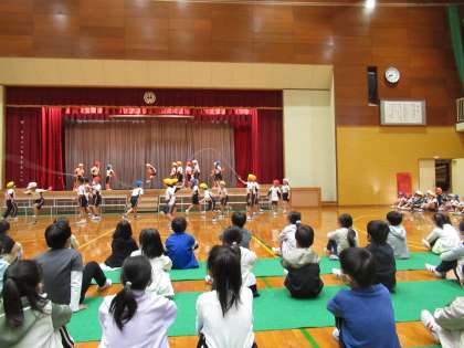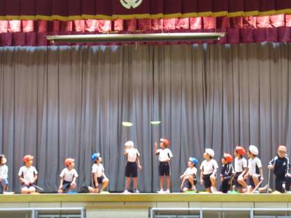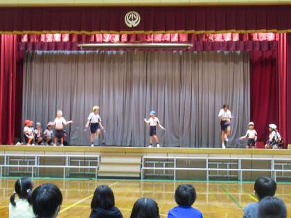 1・3年生の前で、自分が練習してきた技を発表しました。1番目ということもあり、緊張した様子の子供たちでしたが、精一杯頑張っていました。