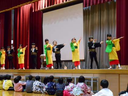 願念坊お踊りの子たちは、願念坊保存協会の方や保護者の方に着付けをしていただき、衣装を着てのぞみました。