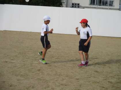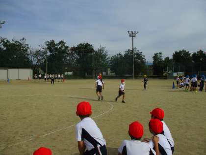 二つに分かれて、どちらが先にゴールに着くか競いました。
