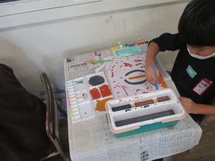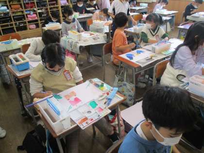 「広がる ふしぎなせかい」の学習では、水彩を使い丁寧に色づけしています。