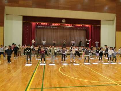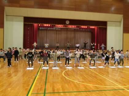 あいうえおの歌を歌ってポーズを付けています。