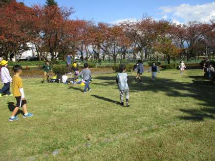 お弁当の後は、公園の遊具や芝生広場で思い切り遊びました。