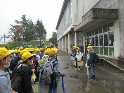 11月4日【金) 3年生 校外学習 出発 公開日 2022/11/04 更新日 2022/11/04 2023年度 3年生 今回の校外学習は、「ますのすしミュージアム」と「民俗民芸村」に行きました。 出発式の様子です。