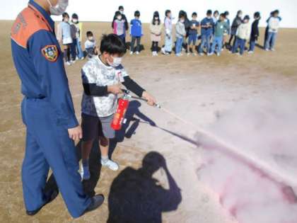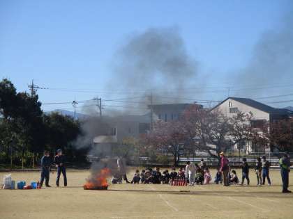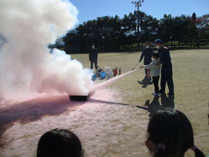 11月7日(月) 3年生 消防訓練2 公開日 2022/11/07 更新日 2022/11/07 2023年度 3年生 消化器取扱訓練では、実際に消化器を触らせていただきました。 消化器の正しい使い方を覚えて、いざ実践です。 大きな炎があがると緊張した様子でしたが、無事消火することができました。