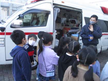 11月7日(月) 3年生 消防訓練4 公開日 2022/11/07 更新日 2022/11/07 2023年度 3年生 車両説明では、消防車と救急車について説明をしていただきました。 消防車の中にはホースがたくさんあったり、救急車の中には病院に安全に搬送するための道具が揃っていたりすることが分かりました。
