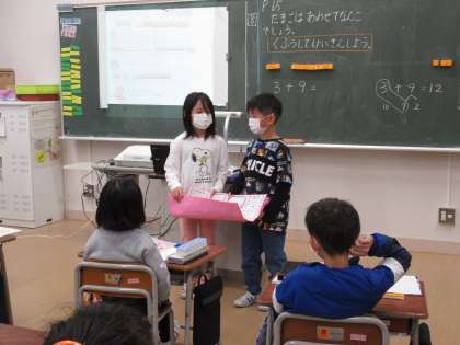 11月8日(火) 2年生 お手紙 2年生から1年生へ 公開日 2022/11/08 更新日 2022/11/08 2023年度 2年生 国語の時間に「お手紙」を学習しています。 1年生の学習発表会の発表を、予行練習の時に見せてもらいました。とても、すばらしかっので、手紙を書くことにしました。さっそく、書いた手紙を渡しました。
