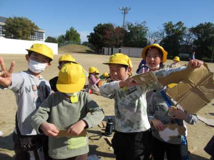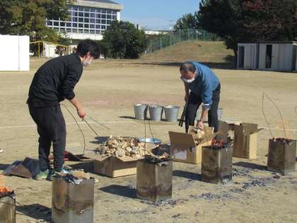 焼き芋を焼くための段ボールも一生懸命にちぎりました。