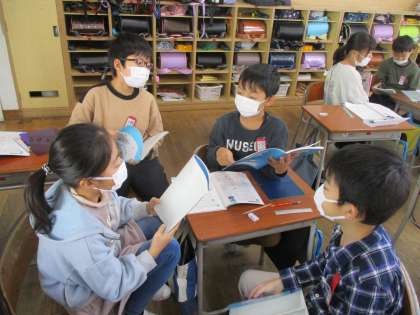 聞いたり話したりしながら、考えを深めています。