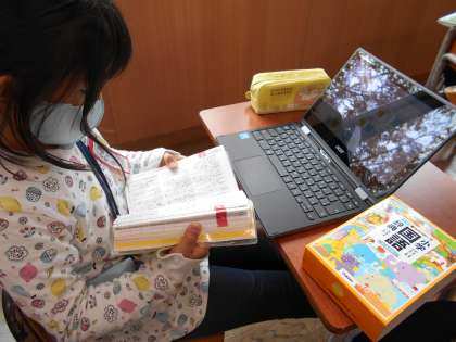 辞書を使い、分からない言葉を調べています。 素早く調べられるようになってきました。