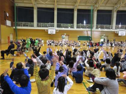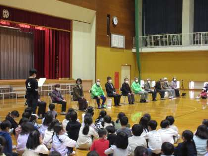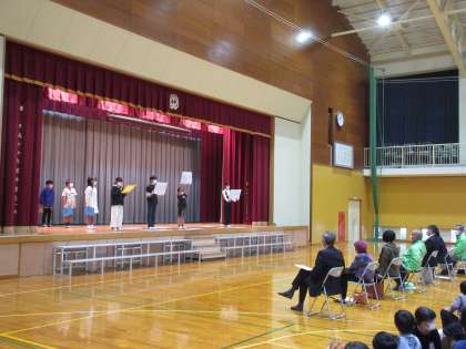 日頃お世話になっている地域の方をお招きし、感謝の集いが行われました。見守り隊や読み語り、グリーンキーパーの方へ委員会や各学年が手紙や出し物をプレゼントしました。一緒に手拍子をしたり、クイズを楽しんだりと交流を楽しみました。