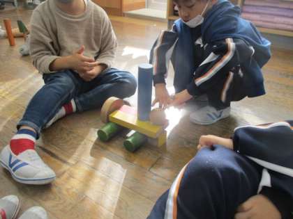 様々な形の積み木を使い、友達と協力して活動を行いました。