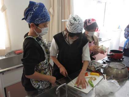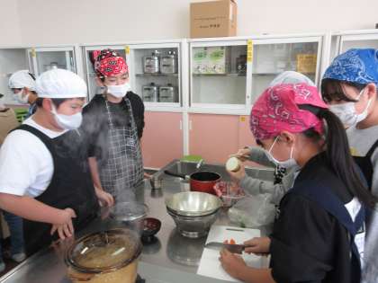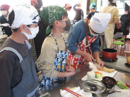 味噌汁の調理もみんなで協力して準備しました。包丁の使い方や野菜の切り方も上手になってきました。おいしくいただくことはできたかな?
