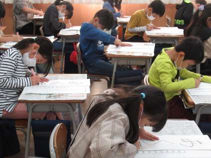 書き初めの練習を始めました。去年とは違った文字を丁寧に書きました。
