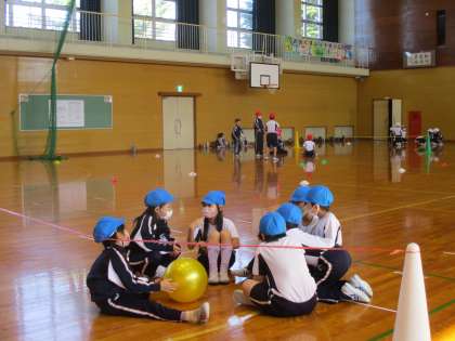 フロアボールの学習では、紅白戦にむけて作戦を立てました。