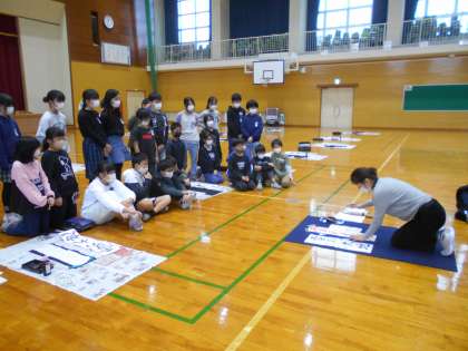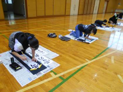 書道の先生の話すポイントに真剣に耳を傾け、心を込めて書きました。