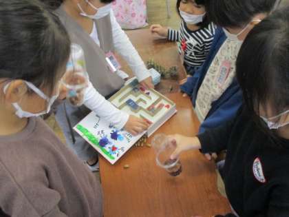 けん玉やマラカス等の友達の作品に触れ、楽しそうな姿を見ることができました。