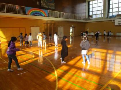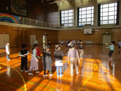 体育館では、ドッジボールや鬼ごっこをしています。体育館が使える日には喜んで体育館で運動しています。