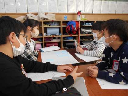 12月9日(金)3年生 はんで意見をまとめよう 公開日 2022/12/12 更新日 2022/12/12 2023年度 3年生 もっとクラスのみんなが仲よくなる集会を開くという議題で話し合いをしました。 司会や記録者を立てて話し合うのは初めてでしたが、お互いに協力して話をまとめることができました。