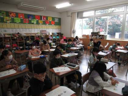 12月9日(金) 2年生 授業の様子(1) 公開日 2022/12/12 更新日 2022/12/12 2023年度 2年生 集中して授業を受けている姿がたくさん見られました。書き初めの練習も始まっており、お手本を見ながら、丁寧に書いています。
