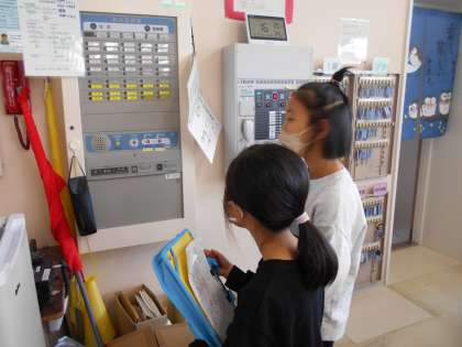 12月13日(火) 3年生 社会 公開日 2022/12/14 更新日 2022/12/14 2023年度 3年生 学校の中にある消防設備について調べています。 各教室に火災報知器、階段近くに防火扉など、設置された場所にも注目しながら学習に取り組みます。