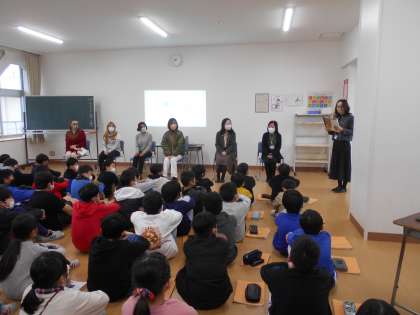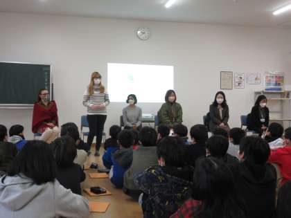 外国語科では、富山県に住む国際交流員の方をお招きし、国際交流活動を行いました。はじめの自己紹介では、出身国の言語での挨拶があり、子供たちも興味津々に話を聞いていました。