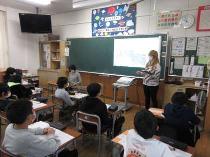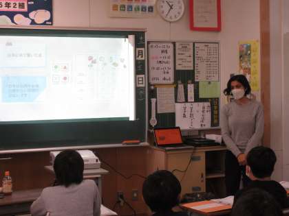 全体での自己紹介のあと、各グループに分かれ、各国の国際交流員の方から出身国の文化や学校生活について話を聞きました。特に日本との共通点や異なる点については、子供たちも初めて知ることが多く、真剣に話を聞いていました。写真は、インドとアメリカグループの様子です。
