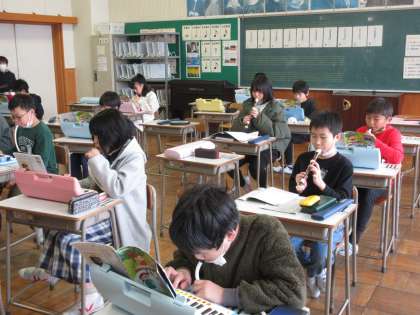 音楽科の時間では、これまで練習してきた合奏の発表会を行いました。それぞれが担当する楽器を一生懸命に演奏する姿が見られました。一体感がある演奏に、終わった後には温かい雰囲気が広がっていました。