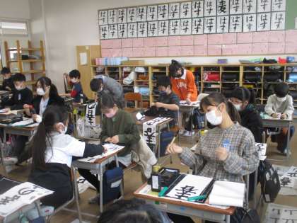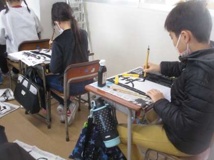 最初の文字から苦戦している子どもやバランスに気を付けている子どもなど目標をもって書いていました。
