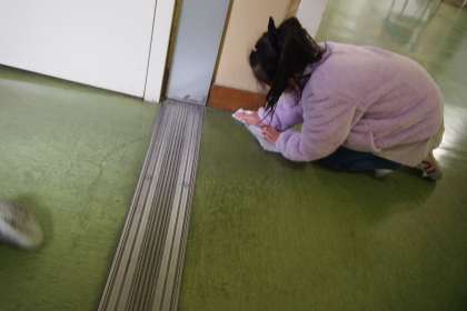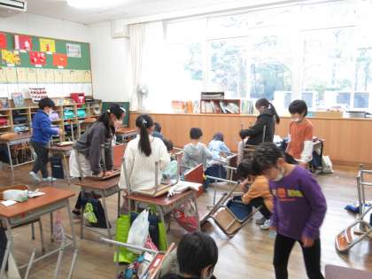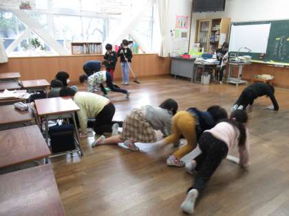 教室や廊下を隅々まで掃除する姿が見られます。