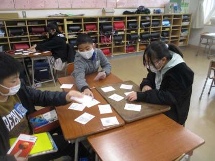 12月22日(木)4年生 国語 公開日 2022/12/22 更新日 2022/12/22 2023年度 4年生 冬にまつわる言葉のかるたをつくっ、てかるた大会をしました。 よく聞いたりすばやく取ったりして楽しんでいました。