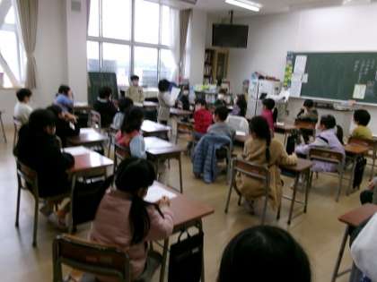 1年生は、小学校生活で初めての年越しとなりました。がんばってきた宿題を出したり、お互いの目当てを聞き合ったりしました。とても落ち着いて過ごしていました。