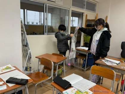 長さが大きくなると単位はどうしたらいいのかを友達同士で考えて学習に取り組んでいました。