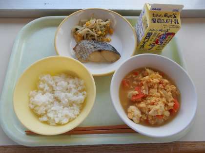1月19日(木)今日の献立は、ごはん・牛乳・鰆の西京焼き・コーン和え・厚揚げの錦とじでした。コーン和えのチンゲンサイの旬は、9月〜1月です。ちょうど今がおいしい時期ですね。ビタミンやミネラルを多く含む栄養価の高い緑黄色野菜です。もやし以外に、キャベツや白菜などと合わせてもおいしいです。コーンの黄色が鮮やかでした。