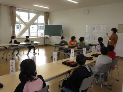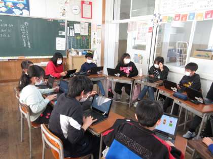 総合的な学習の時間では、卒業を祝う会プロジェクトを進めています。水曜日に行われる代表委員会のリハーサルを行ったり、メッセージカードのレイアウトを考えたりと子供たちが中心となって活動を進めています。