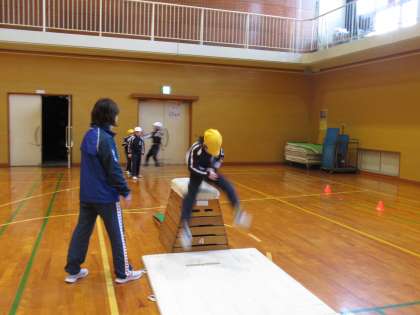 1月23日(月) 2年生 体育(2) 公開日 2023/01/24 更新日 2023/01/24 2023年度 2年生 楽しく跳び箱を跳べるように簡単な動きから教えてもらいました。「跳べるようになって楽しかった」という声も聞こえてきました。