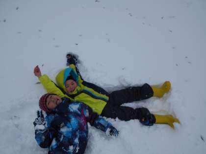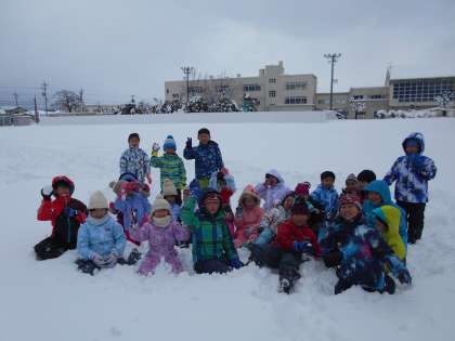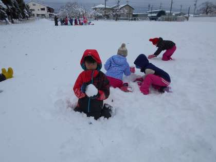 子供たちが外に出たときは、雪がやみ、太陽も少し出ていました。雪遊び日和の中、楽しく遊びました。