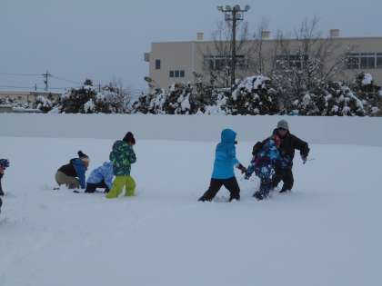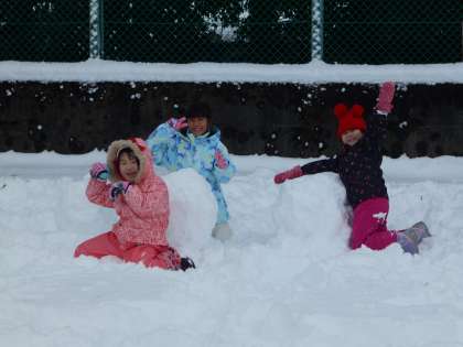 雪を投げたり、雪の中に飛び込んだり、雪だるまを作ったりしました。