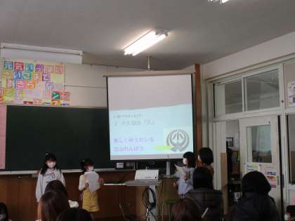 土曜日の学習参観では、総合的な学習の時間に学習してきたことを、スライドを使ったプレゼンテーションで発表しました。
