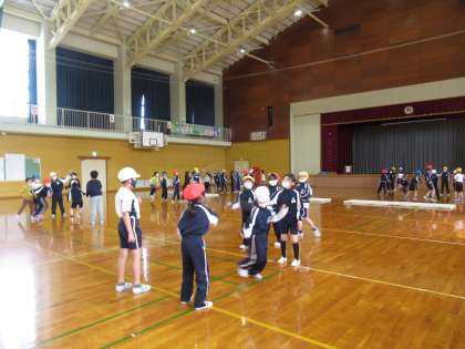今日は、2年生が大久保タイムに体育館が使える日です。さっそく、大縄で8の字跳びの練習をしました。まだまだ、大縄の中に入るのに慣れませんが、がんばって練習をしています。