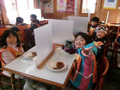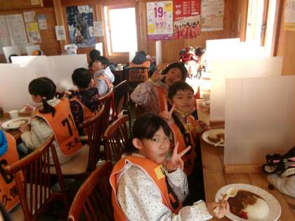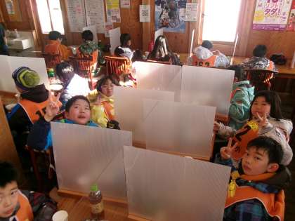 2月2日(金)3,4年生 スキー学習 昼食の様子1