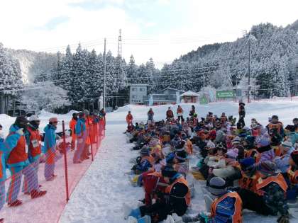 開講式では、インストラクターの先生たちの滑りを見ることができ、歓声も揚がっていました 。