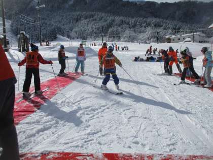 スキー板の履き方や歩き方から始めるグループやすぐにベルトコンベアにのって練習するグループもありました。